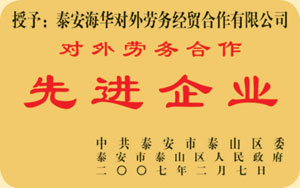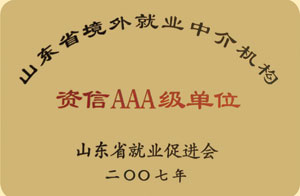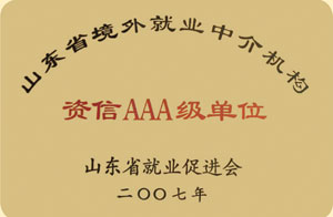 弊社は2005年にISO9001:2000國(guó)際品質(zhì)システム認(rèn)証を取得し、2005年から2007年まで三年連続泰安市委員會(huì)市政府と泰山區(qū)委員會(huì)區(qū)政府に「対外経済先進(jìn)企業(yè)」賞を授與されました。2007年に中國(guó)中日研修生協(xié)力機(jī)構(gòu)の成員になることを認(rèn)可され、山東省就業(yè)促進(jìn)會(huì)に「山東省海外就職仲介機(jī)構(gòu)信用できるAAA企業(yè)」と評(píng)価されました。